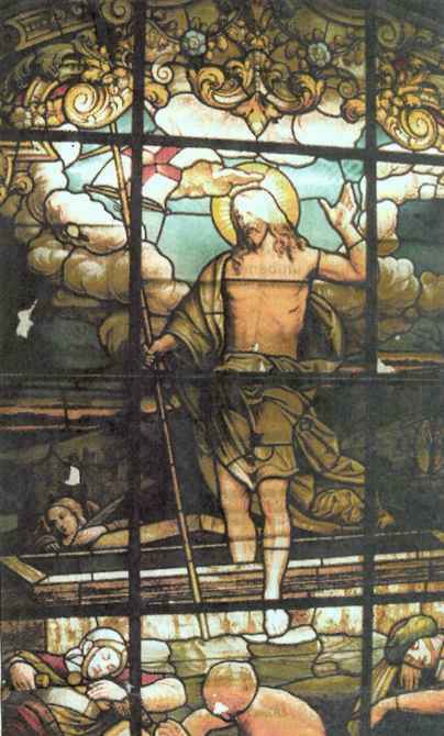 Das gerettete Chorfenster der Kirche zu Stavenow.